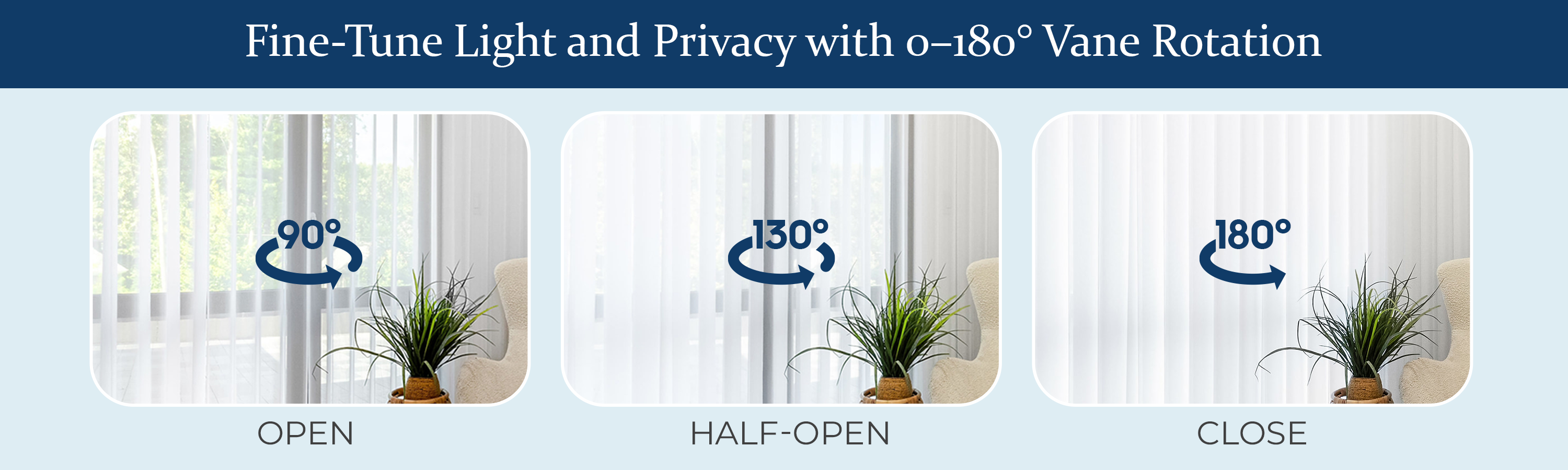 Pull the CHAIN to rotate the slats up to 180°, letting you fine-tune the perfect light level — from bright to fully private