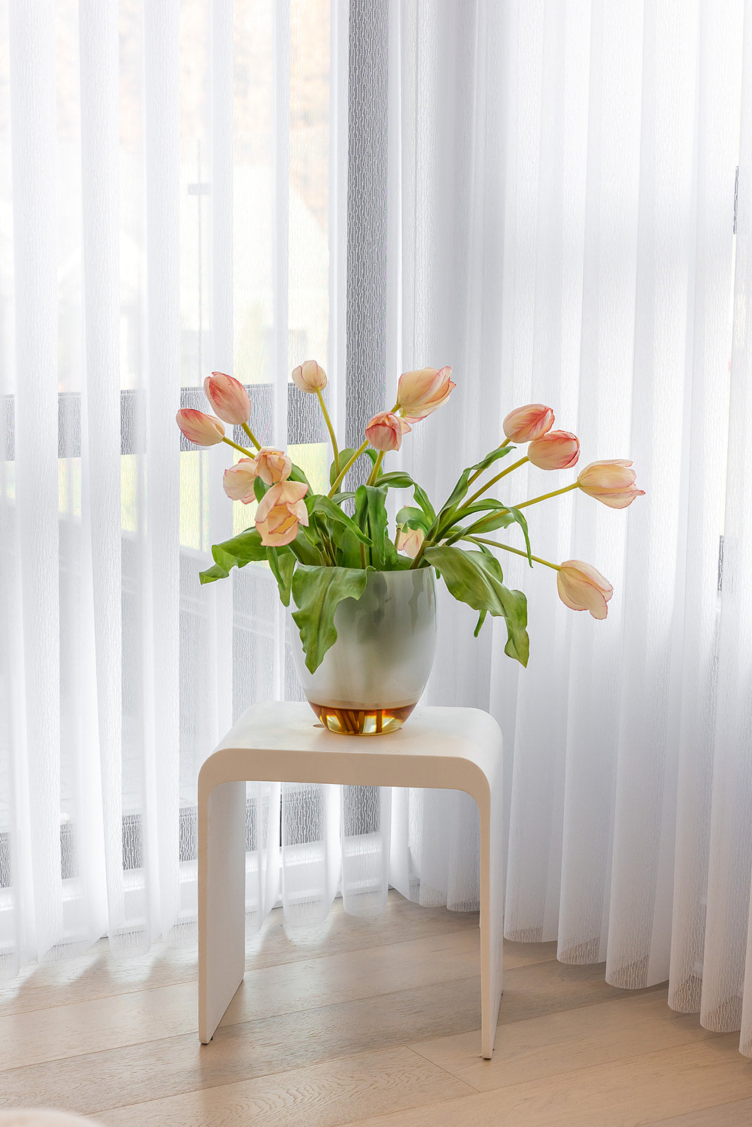 Bring warmth and modern elegance into your home with a system that blends the soft look of sheer curtains with the light-control benefits of blinds—all in one smart window treatment.
