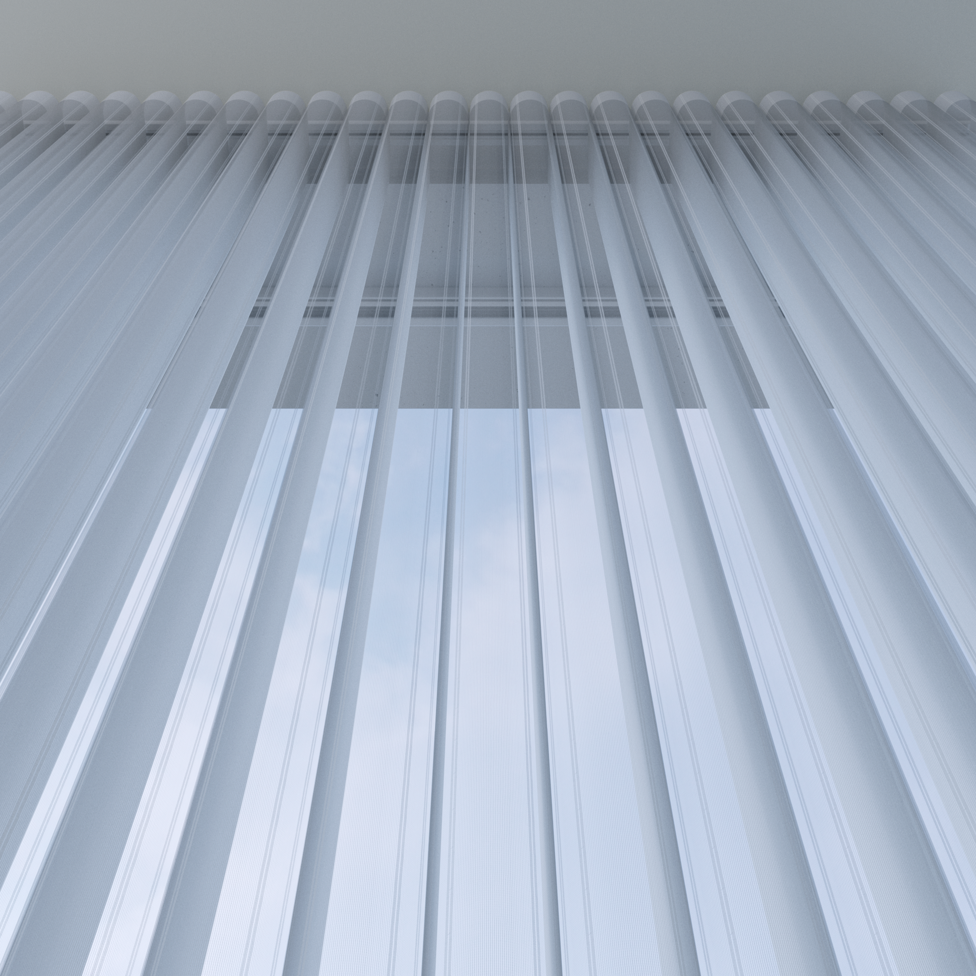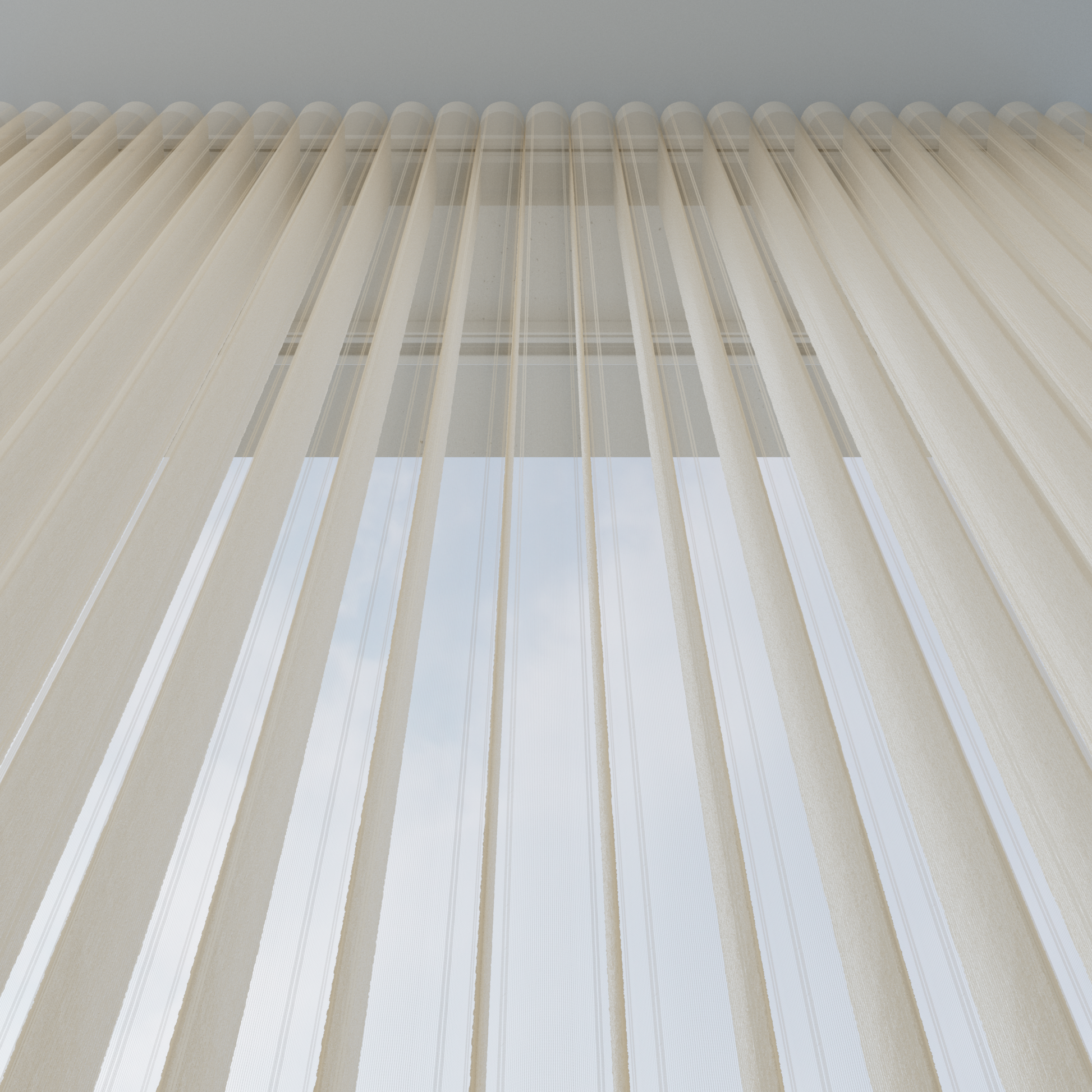 90° — soft, elegant waterfall look with natural sunlight, outside views, and sheer transparency