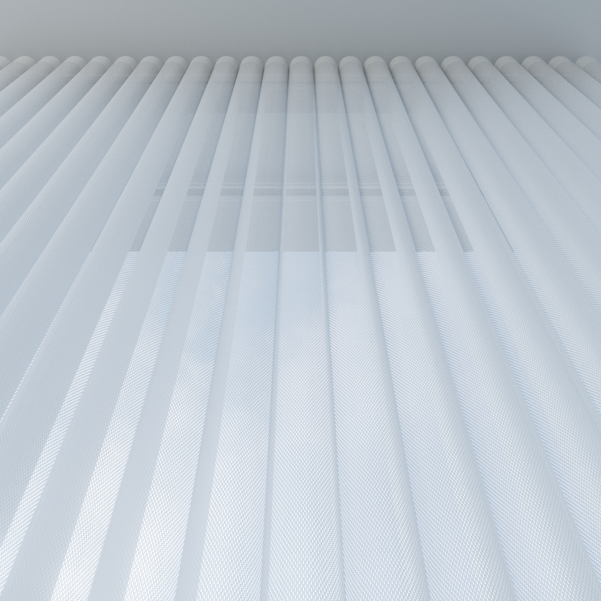 90° — soft, elegant waterfall look with natural sunlight, outside views, and sheer transparency